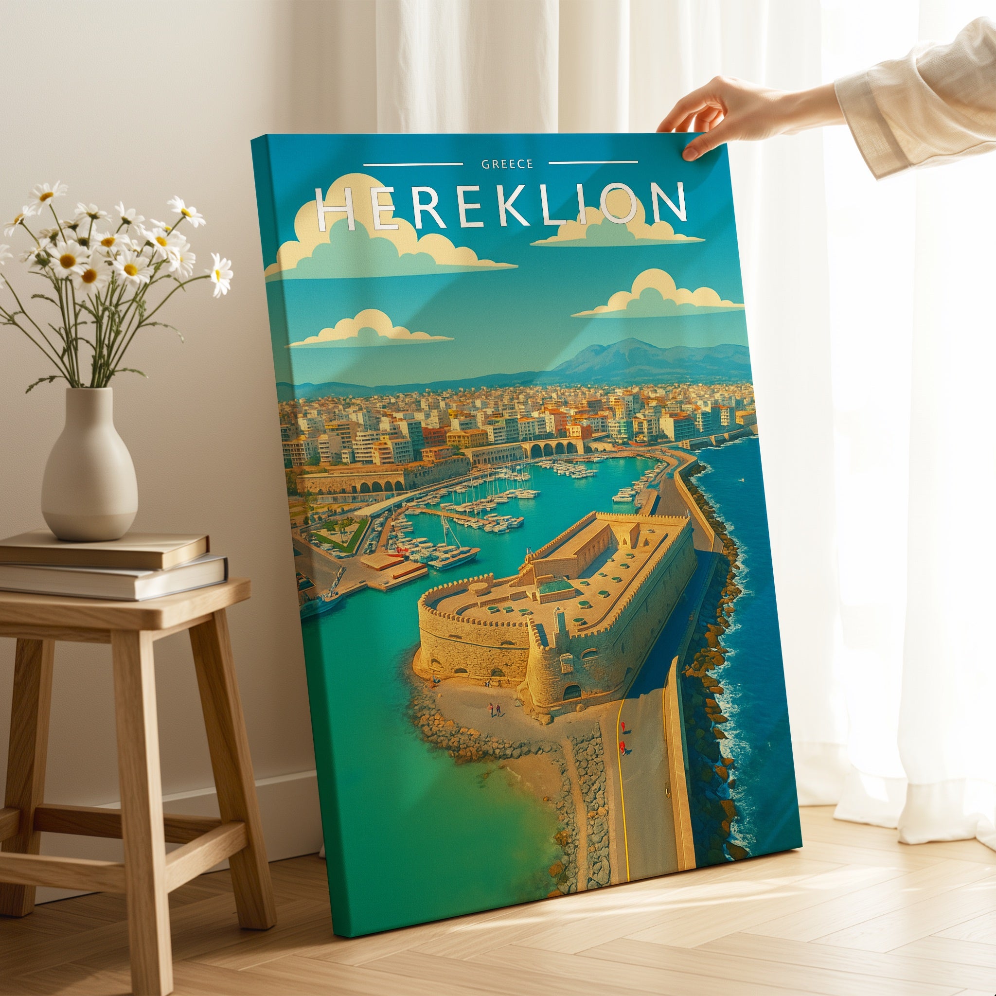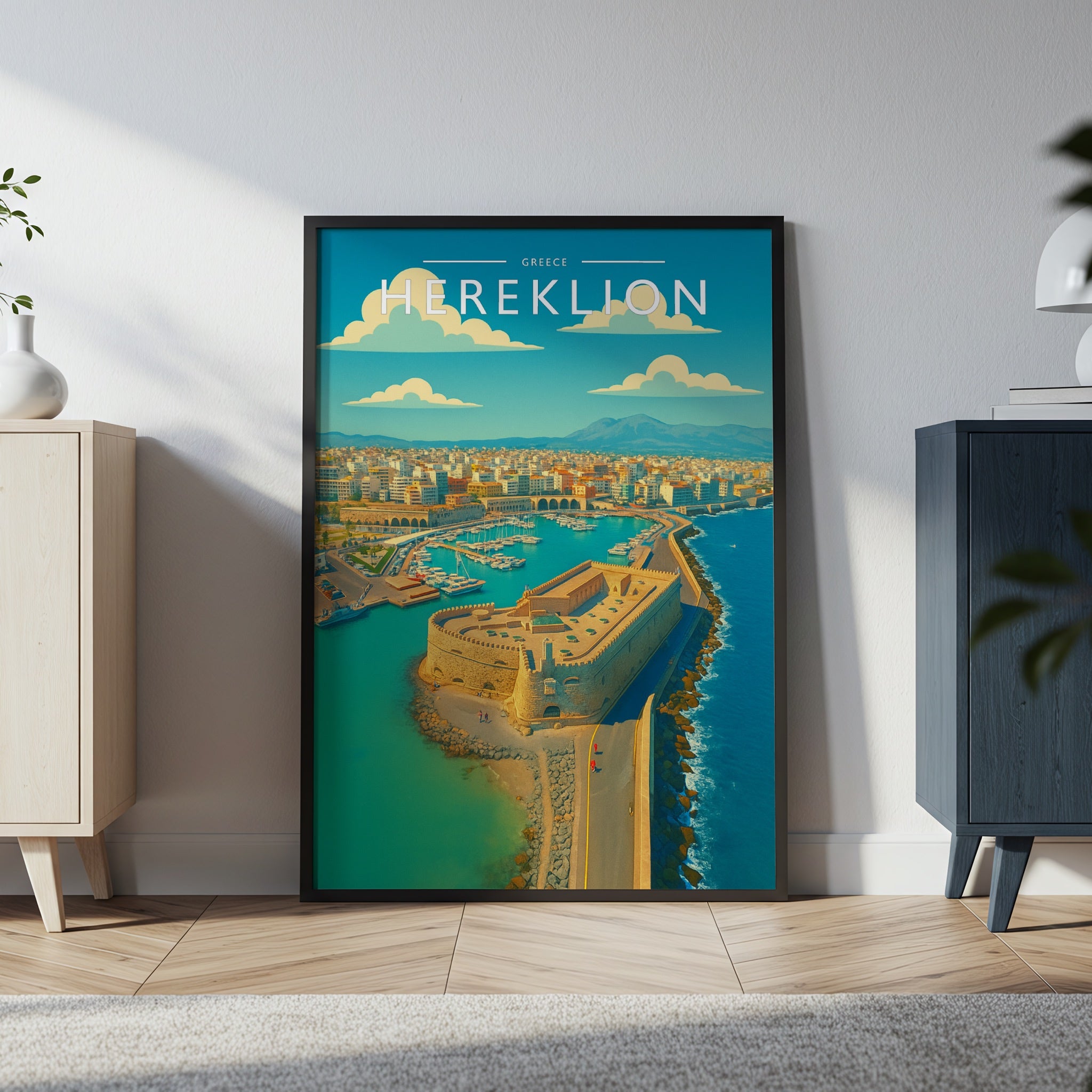Celebrate the enchanting charm place of Herekllon this striking travel poster, showcasing this Irish destination in vivid colour and detail.