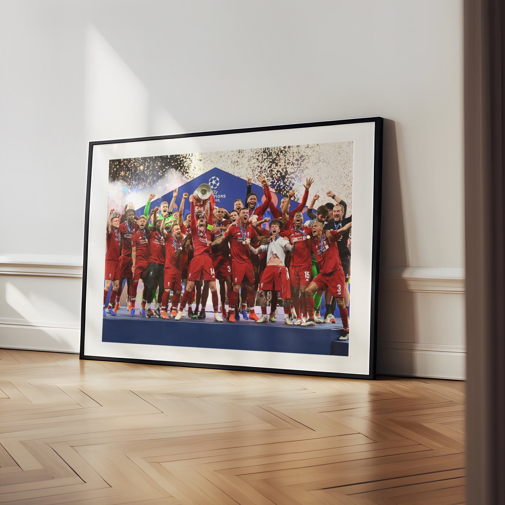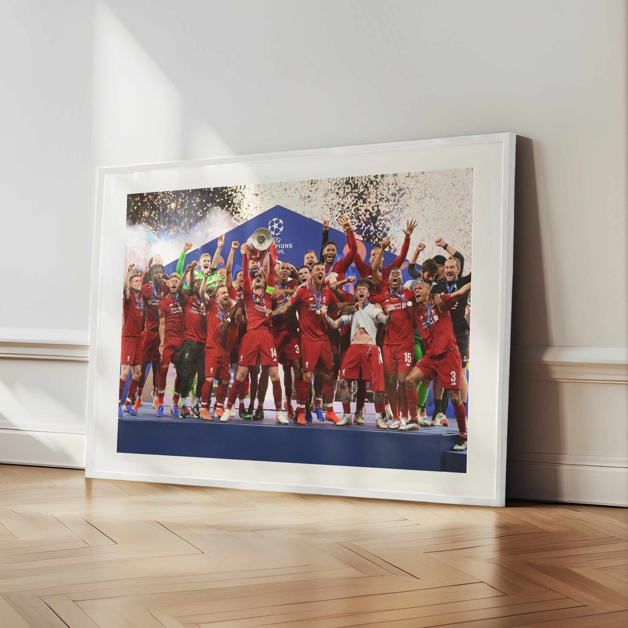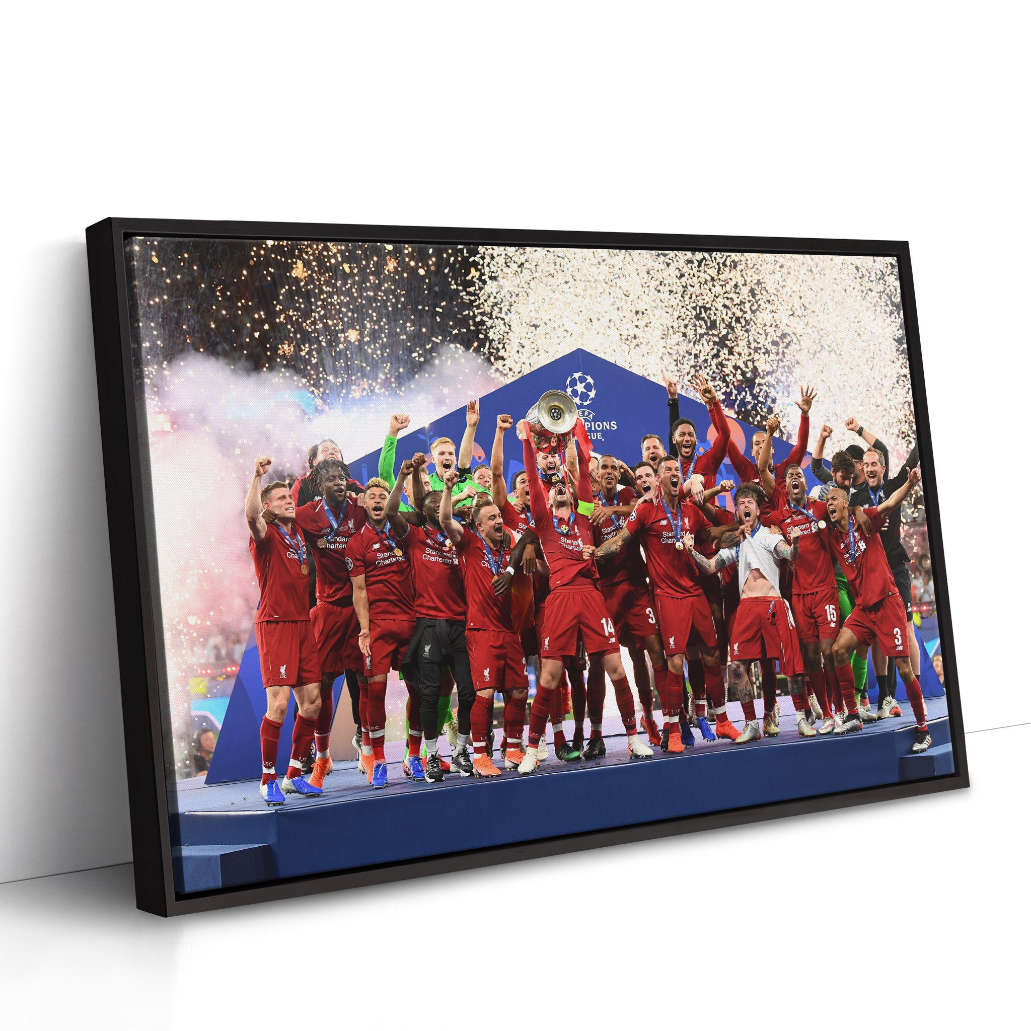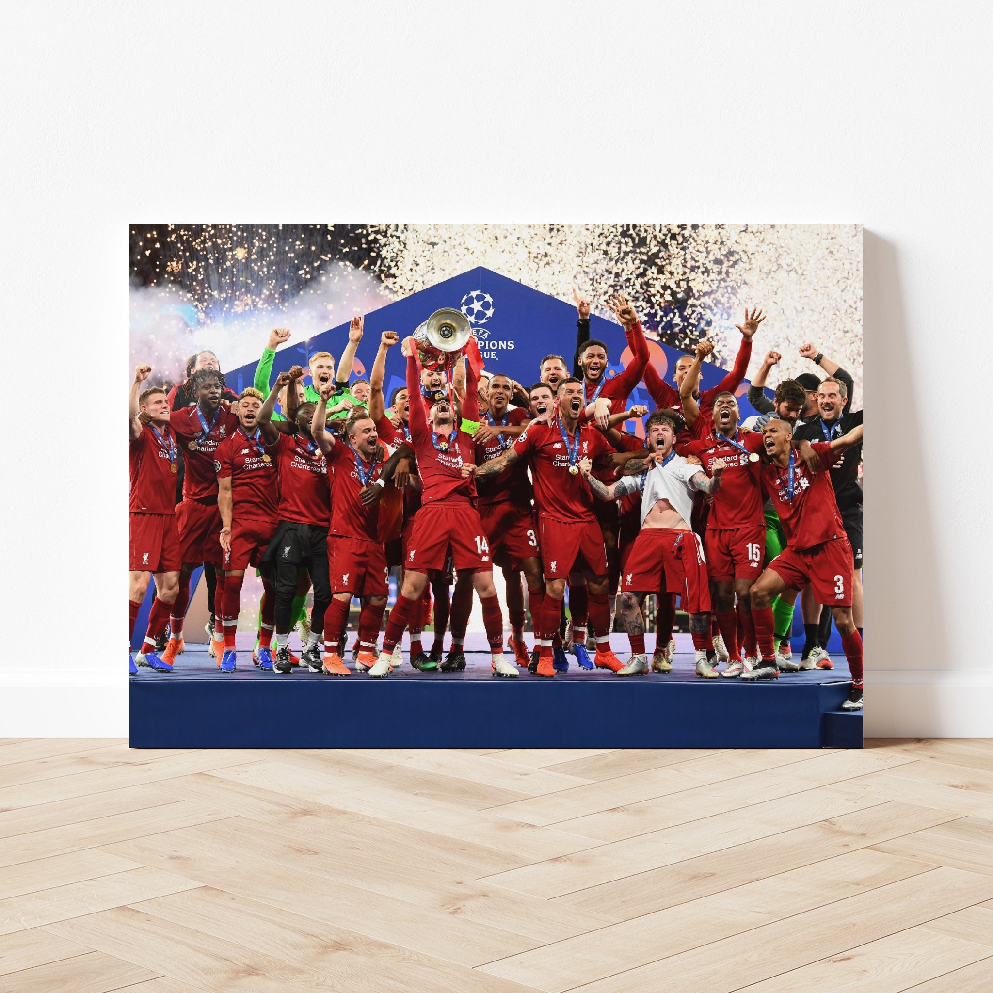 This is apart of our Football Team Canvas range, here is our Liverpool Football Club Champions League Collection Canvas. This image is taken from the Champions League WIN in 2019 for Liverpool Football Club.