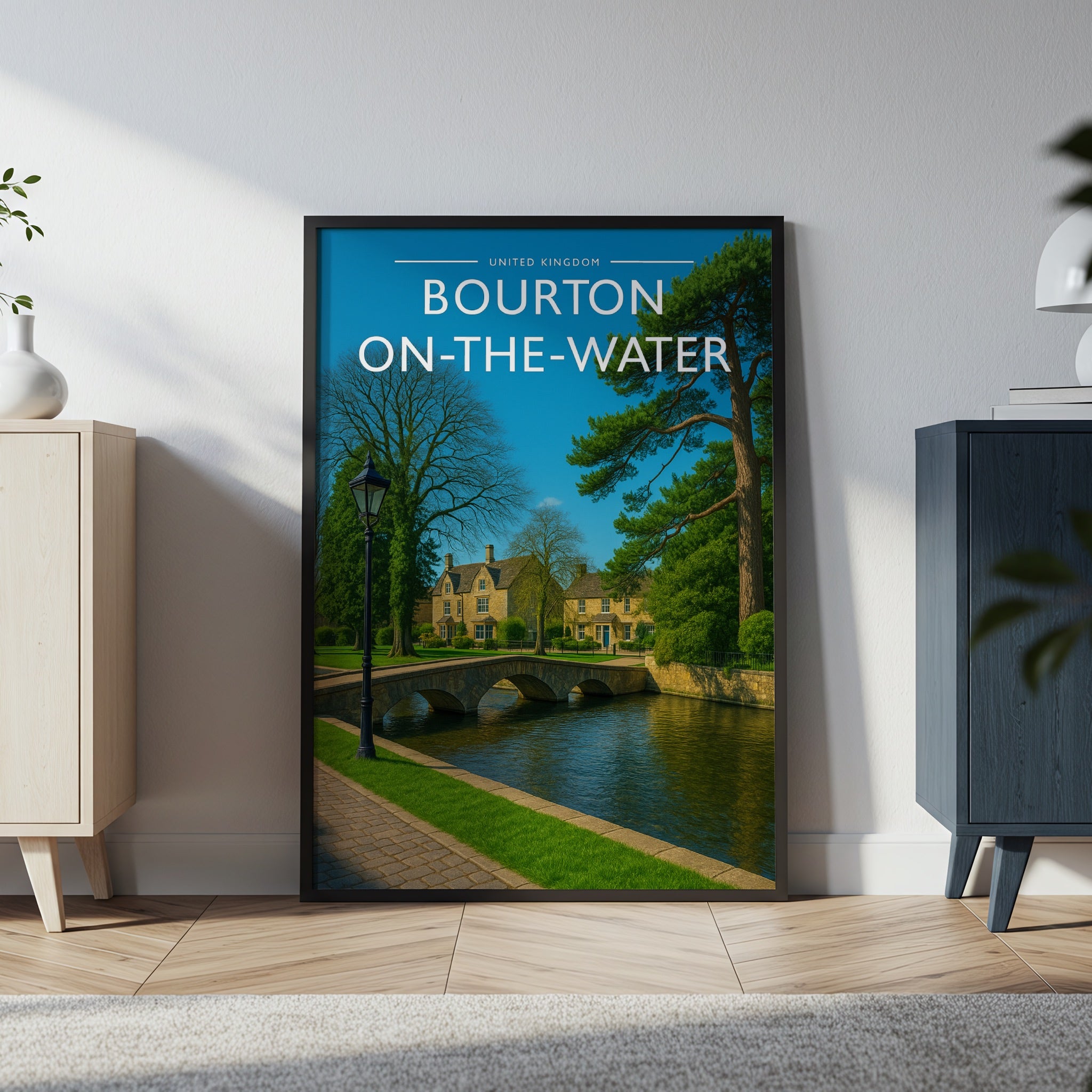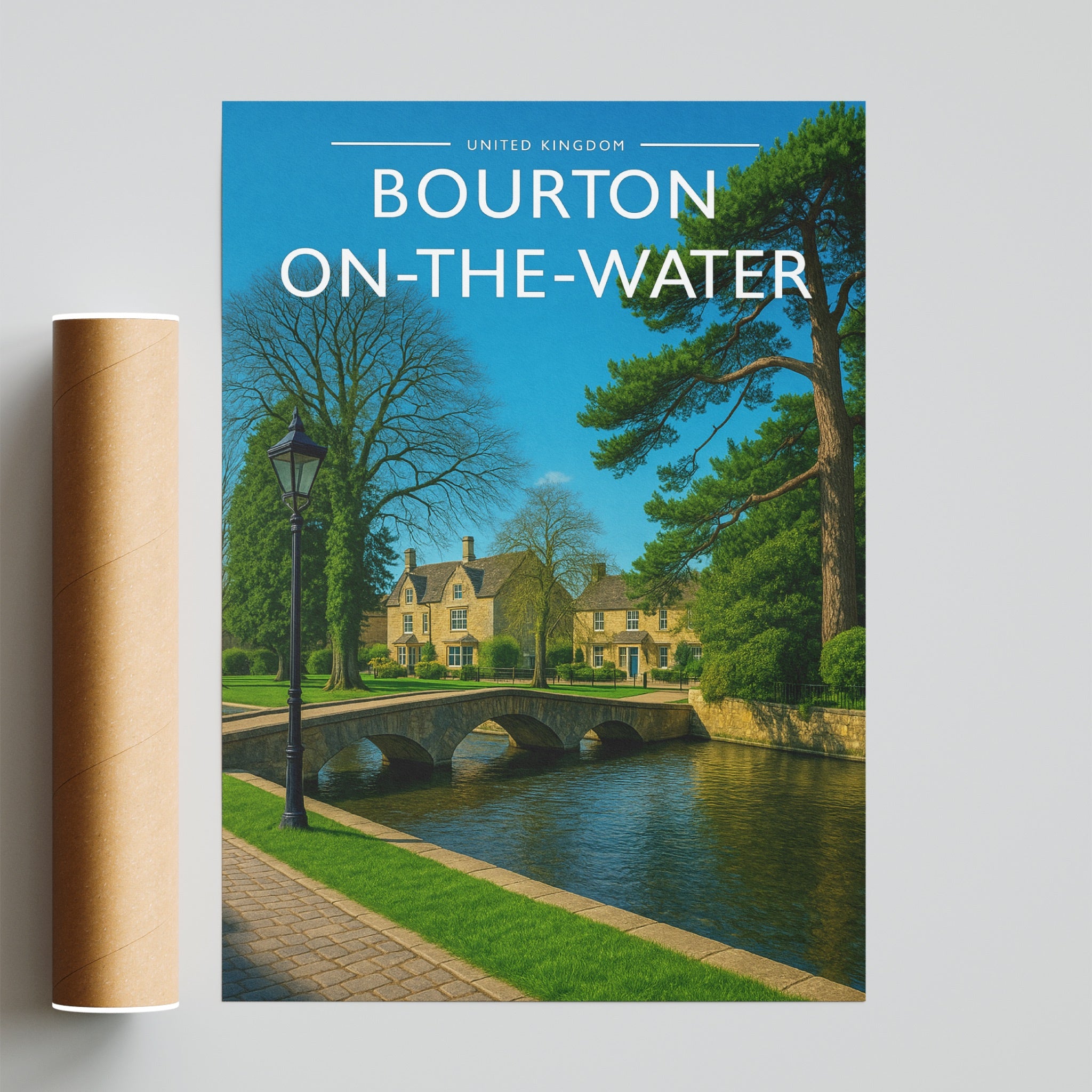 Celebrate the enchanting charm place of Bourton-on-the-Water this striking travel poster, showcasing this Irish destination in vivid colour and detail.