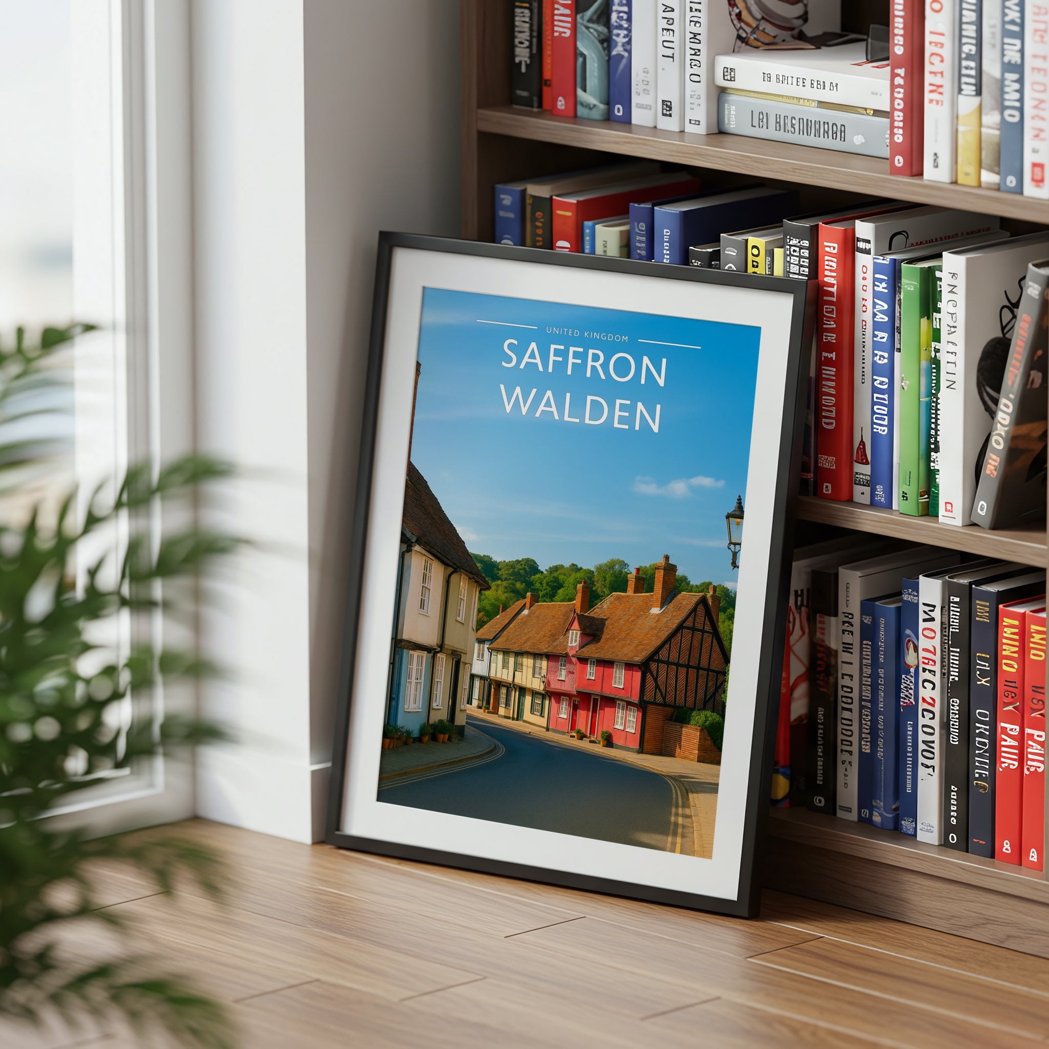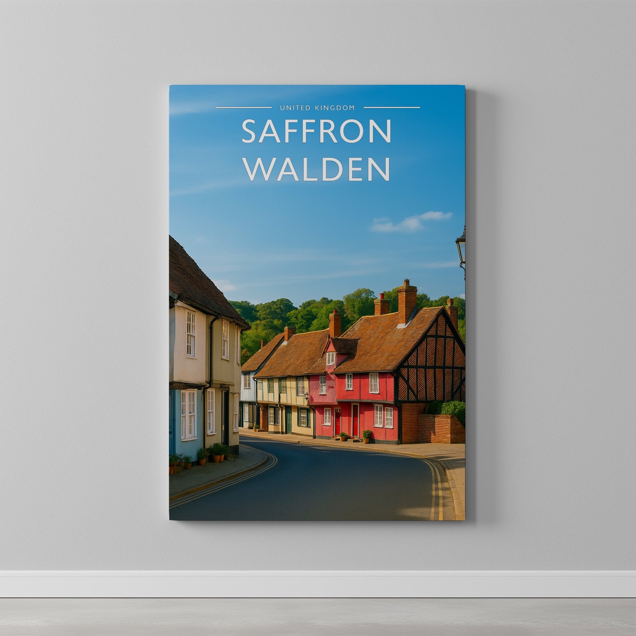 Celebrate the enchanting charm place of Saffron Walden this striking travel poster, showcasing this UK destination in vivid colour and detail.