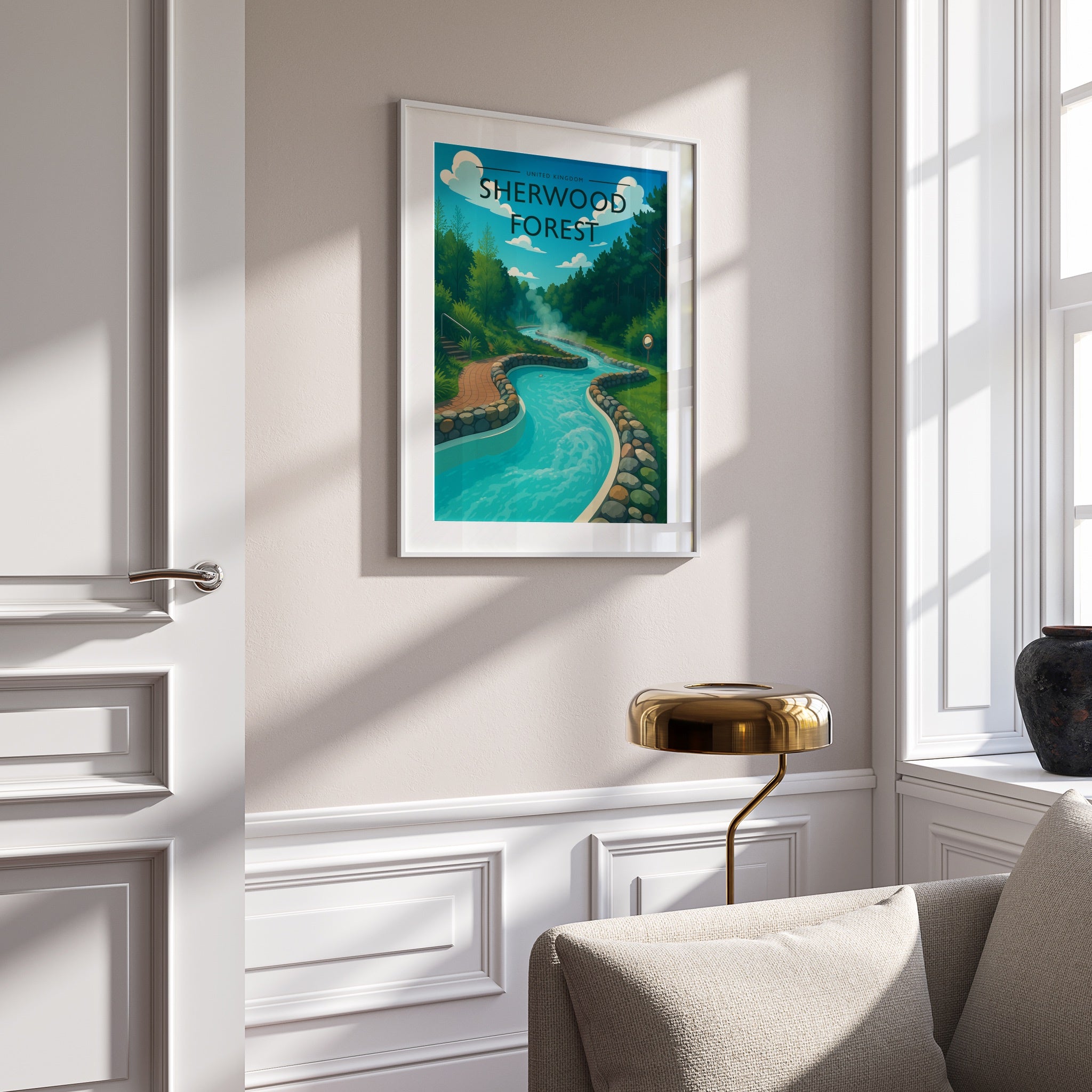 Celebrate the enchanting charm place of Sherwood Forest this striking travel poster, showcasing this Irish destination in vivid colour and detail.